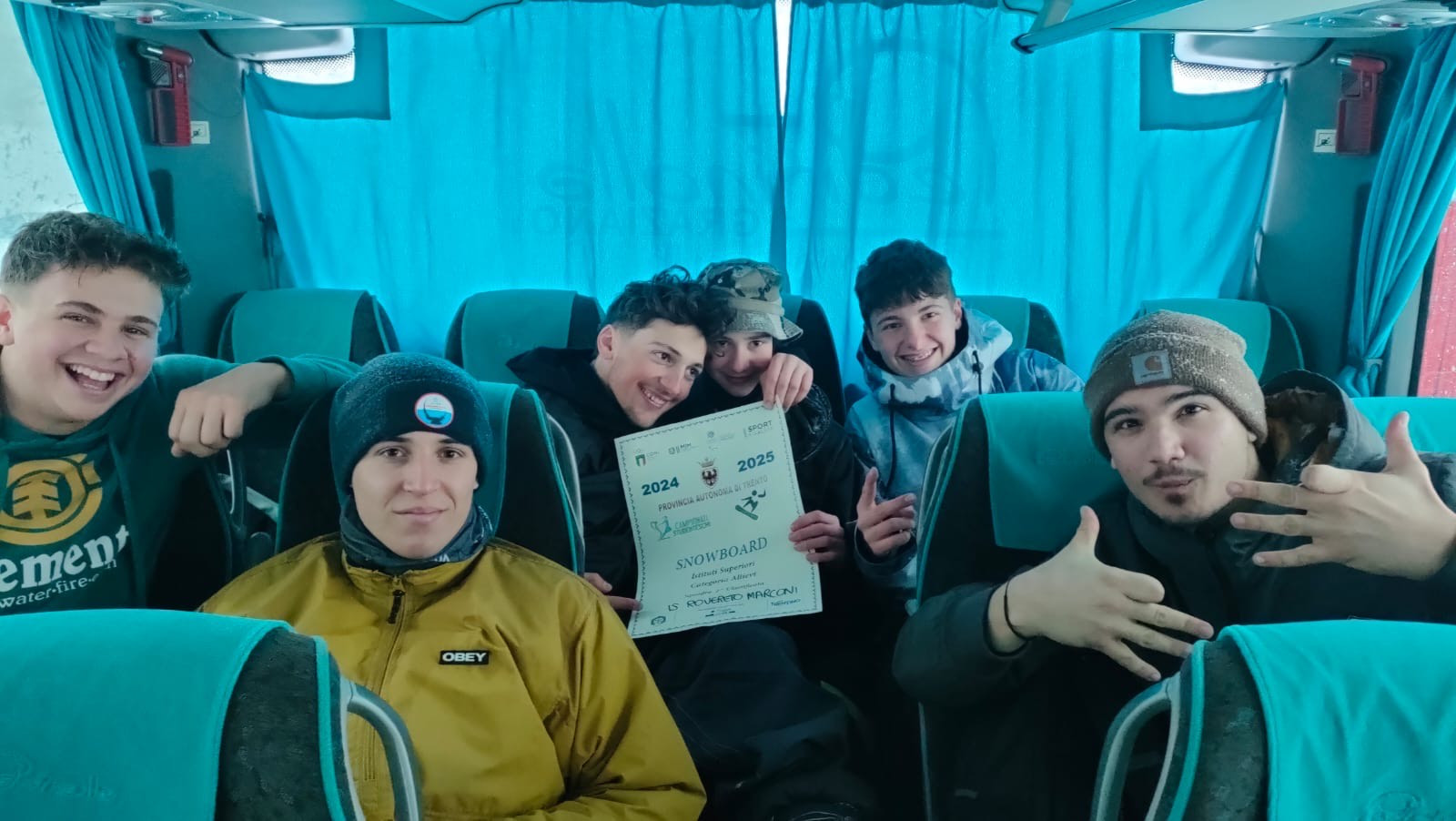 La rappresentativa del Marconi che purtroppo non ha potuto gareggiare nella giornata riservata allo Slalom Gigante School, era composta da Riccardo Fontana, Giovanni Monte, Gabriele Villa, Giovanni La Grotta, Andrea Hartner, Francesco Caden e Sebastiano Veronesi.