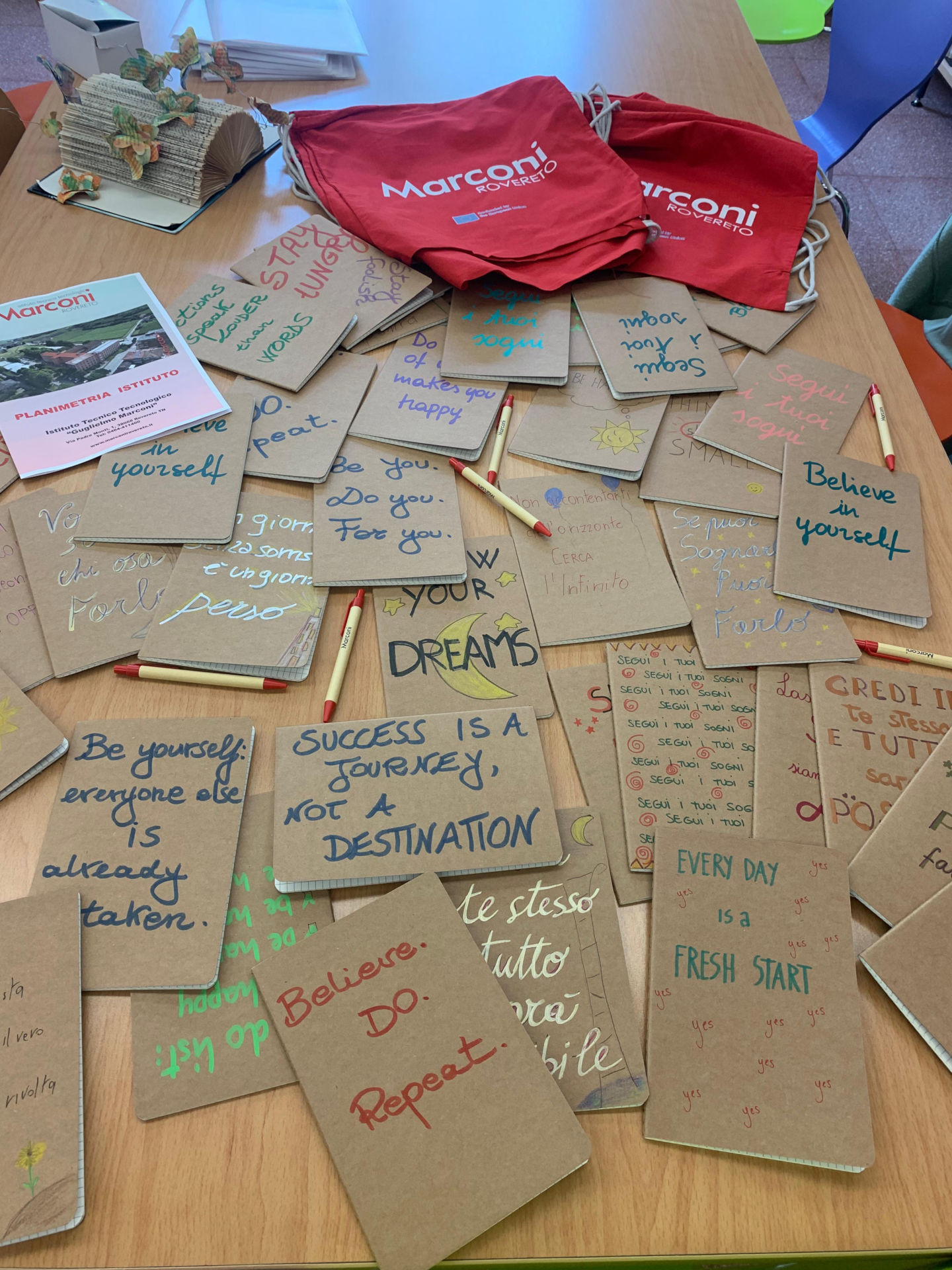 Un momento speciale è stato la consegna di un kit di benvenuto, con un taccuino personalizzato, una penna e una mappa della scuola, per accompagnare gli studenti nel loro percorso di scoperta e di integrazione.